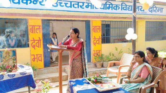 शासकीय कन्या उच्चतर माध्यमिक विद्यालय दरिमा में आज दिनांक 9 जून 2024 को कक्षा नौवीं के नव प्रवेशित बच्चों हेतु शाला प्रवेश उत्सव मनाया गया। कार्यक्रम में बच्चों का मनोबल बढ़ाने के लिए दरिमा ग्राम सरपंच श्रीमती मीरा सिंह smdc सदस्य एवम शाला विकास समिति सदय श्रीमती वायु श्री सिंह एवम्ं पालको द्वारा बच्चो को तिलक लगाकर मिठाई खिलाकर किताबों का वितरण किया गया साथ ही एक वृक्ष मां के नाम हेतु सभी के द्वारा पौधों का रोपण किया गया कार्यक्रम का संचालन श्रीमती अंजना श्रीवास्तव द्वारा किया गया साथ ही संस्था की प्रभारी प्राचार्य श्रीमती रेणु बाला यादव द्वारा पिछले वर्ष में शाला की उपलब्धियां अपने अभी भाषण में बताया गया इस कार्यक्रम में संस्था के सभी शिक्षक एवं पालक उपस्थित रहे